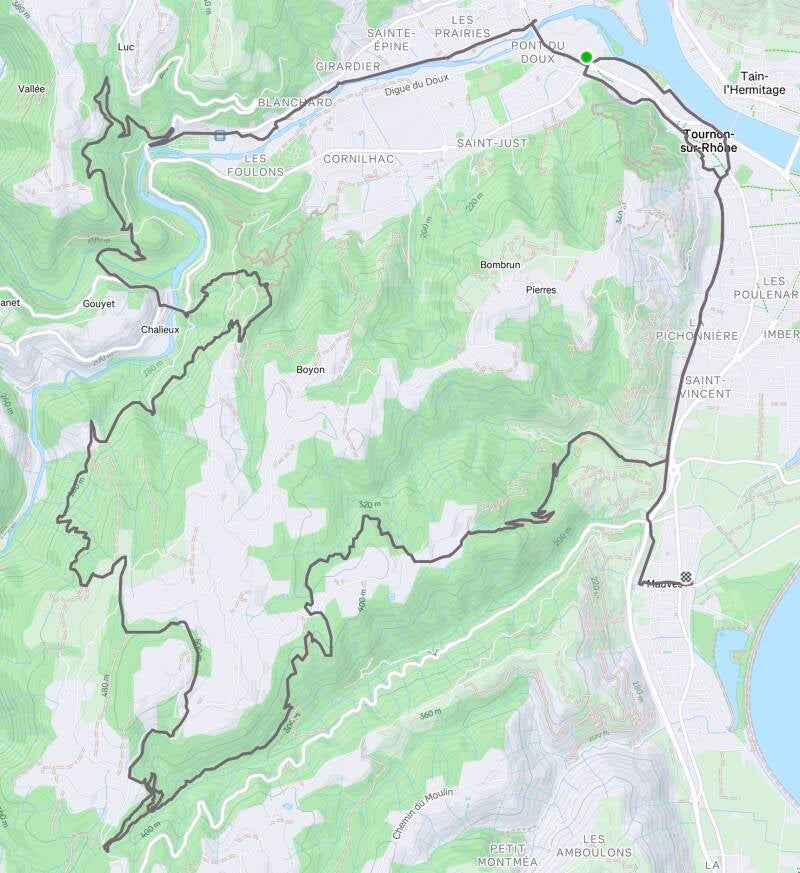 Circuit 2 de Tournon 50 km pour 1200m de dénivelé positif : openrunner/16281354